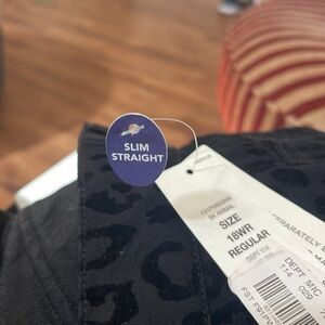 NWT Westbound Woman black leopard pants with front and back pockets. Size 18WR. Approximate measurements are 21 waist and inseam is 31 and total length is 41