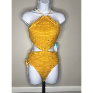 NWT Wet Swimwear Crochet One Piece Swimsuit Cut-Out Waist Saffron Women's S