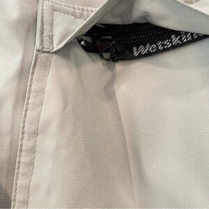Stay prepared in style with these NWT WetSkins ultralight waterproof cargo pants in versatile light beige. Crafted for active comfort, they feature cargo zip pockets, an adjustable waistband, and hook-and-loop hems for a customizable fit. Ultralight yet fully lined, these pants are splash-proof and storm-ready, perfect for hiking trails, biking, camping, or urban commutes. Their high-waisted cut gives a secure and flattering fit while remaining practical and modern. Great for festivals, travel, or everyday rainy days.