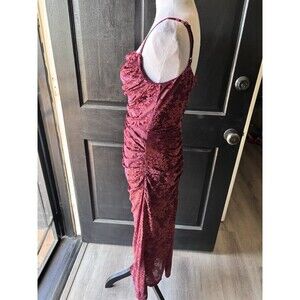 NWT Whimsigoth Burgundy Burnout Velvet Draped Bodycon Stretch Column Gown