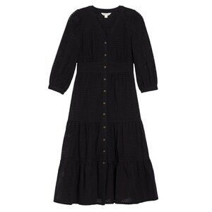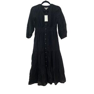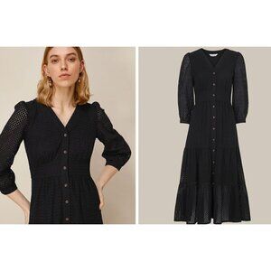 NWT Whistles Women's Size US 2 Sara Eyelet Midi Broderie Dress - Black MSRP $319