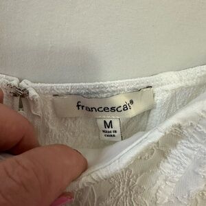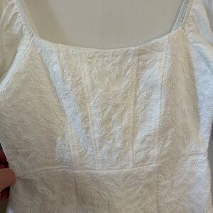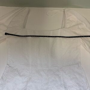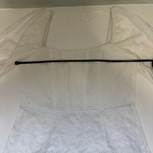 Perfect Spring or Bridal Dress all white with floral imprint. Dress sleeves are airy and light but puff. Dress body is stretchy and light. Great for any weather. NWOT! Never worn, has no tears or stains.
