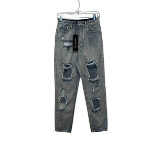 NWT White Fox Blue Lets Bounce Disressed Boyfriend Jeans Women Size Small