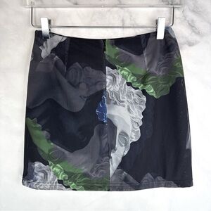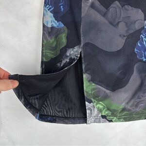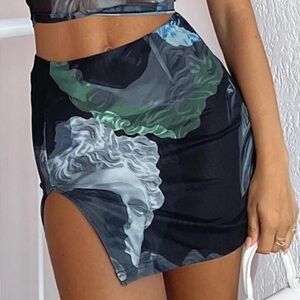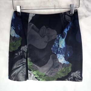 NWT White Fox Renaissance Print Mesh Mini Skirt with Slit Navy Blue Trendy Y2K M