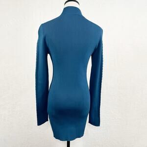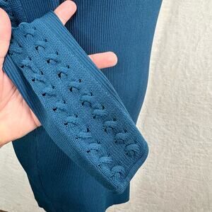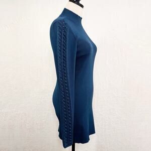 White House Black Market Braid Sleeve Tunic in Midnight Teal.