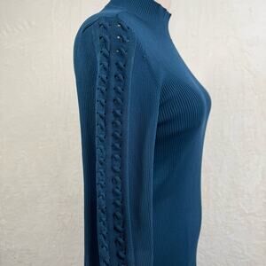NWT White House Black Market Braid Sleeve Tunic Blue Mock Neck Preppy Size M