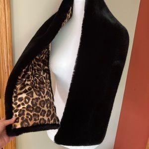 NWT White House Black Market Faux Fur Leopard Signature Black Puffer Stole Scarf. Fabulous super soft and warm black faux fur with leopard print on the other side. New with tag. Originally retail price $79. Glamorous piece, perfect for night out, black tie event, wedding or other formal events. Measures approximately 9”x54”.