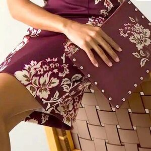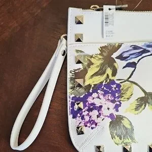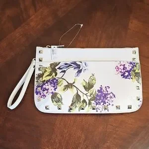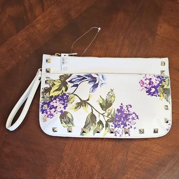 NWT White House Black Market Floral Studded Wristlet Clutch White, Purple