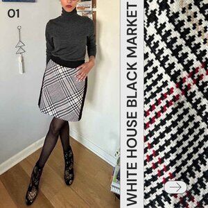 NWT! White House Black Market / Plaid Skirt / Size 4 / Lined Side Zip Wool Blend