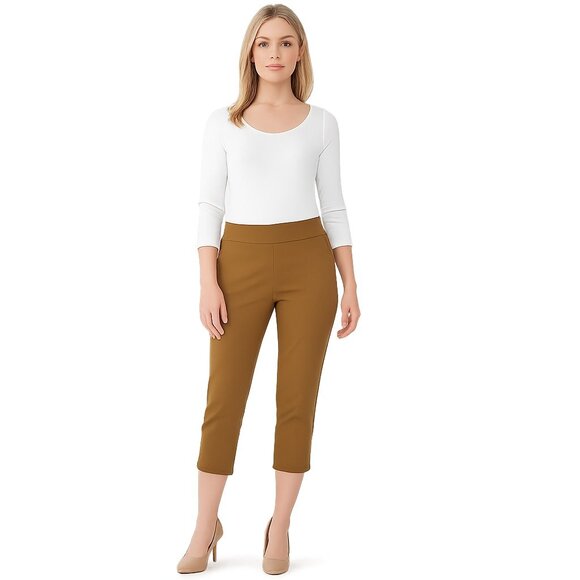 workwear, office, business casual, career, meeting outfit, executive style, classic, timeless, elegant, chic, sophisticated, modern, minimalist, polished, refined, classy, feminine, versatile, stylish, high-quality, upscale, sleek, elevated, professional, evening, dressy, cropped pants, capri trousers, brown, camel, caramel, solid, smooth cotton-blend, soft woven, tailored, slim fit, casual, office wear, travel, spring summer, versatile, minimalist, modern, polished, stylish