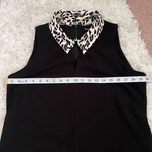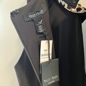 This White House Black Market dress is black in color with a removeable leopard pattern collar. It is a size 14 and brand new with tags.