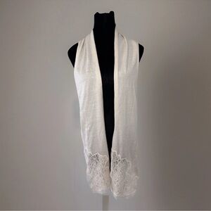 NWT White House Black Market Silk Cashmere Blend Scarf Lace Embroidery Ivory