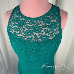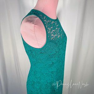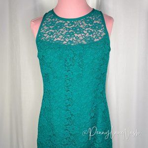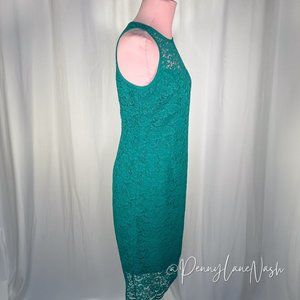 NWT White House Black Market Sleeveless Lace Sheath Dress Teal Blue