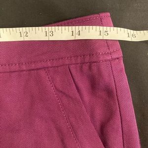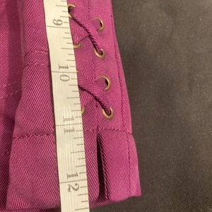 Size 4 Petite. Measures 15 from Hip to Hip. Length is 12 1/2 Inches. Inseam 4 Inches. Made of 100% Lyocell. Machine Washable. Shoe lacing down side, belt loops, and 4 Pockets.