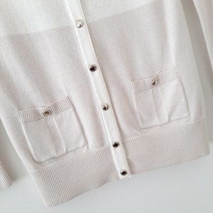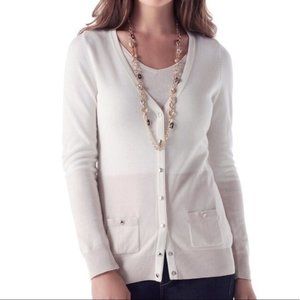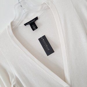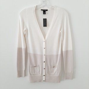 NWT White House Black Market V-Neck Colorblock Cardigan Sweater, Ivory/Ecru, XS