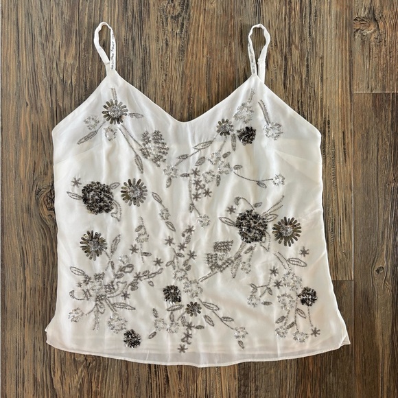 NWT White House Black Market V-Neck Tank Top Cami XSP Ecru Silver Embellishments