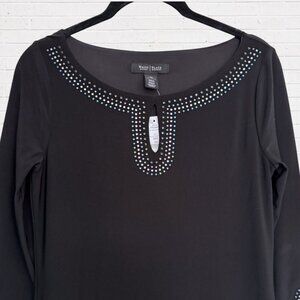 NWT White House Black Market WHBM Black Blue Rhinestone Keyhole Neck Dress XS