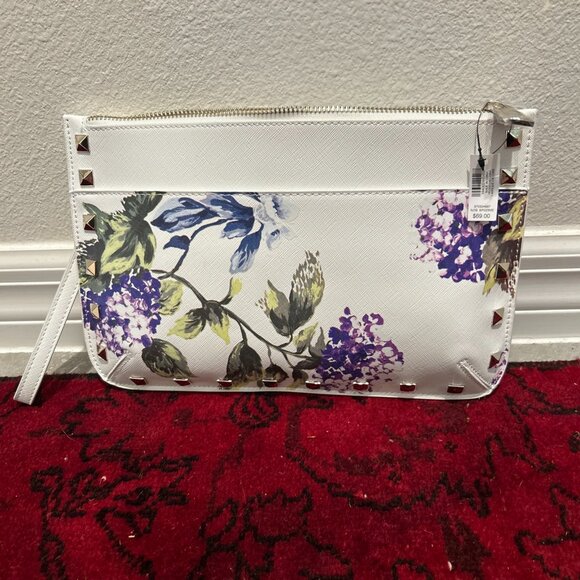 NWT White House Black Market White Floral Faux Leather Clutch/Wristlet