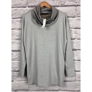 NWT White House Black Market Women’s M Grey Funnel Neck Zip Pullover Chic Cozy