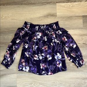 NWT White House Black Market Women’s Purple Floral Off-Shoulder Blouse Size XS