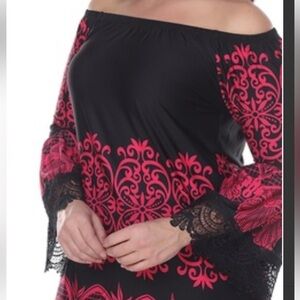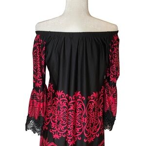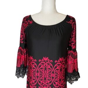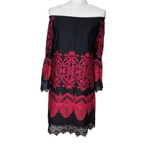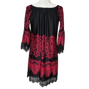 NWT White Mark Black and Fuchsia Lace Trimmed Shift Dress Sz M