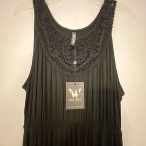 NWT White Mark Black Maxi dress. Crochet detail at the neck and chest. Size L. Soft, stretchy, casual, everyday dress. Wear with belt if you like and sandals or tennis shoes.