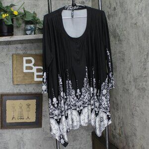 NWT White Mark Womens Plus Size Dulce Tunic Top Black / White 4X