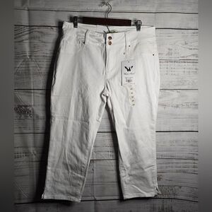 NWT Stylish white capris by White Mark. Perfect for a modern look and casual wear. Capris have pockets with 2 gold buttons and a zipper. Women's plus size 20. 97% Cotton