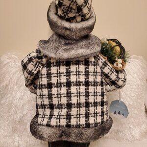 NWT White Pine Free Standing Santa Black White Plaid Herringbone Holiday Decor