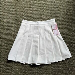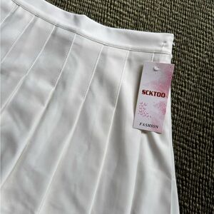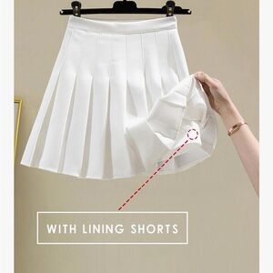 Features: Mini length skirt with inner shorts, Pleated style, skater design, high waisted, a-line ,pleated hem skirt, side hidden zipper closure