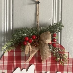 NWT White Raised Wood Merry Red Plaid Christmas Ornament Wooden Decoration Sign