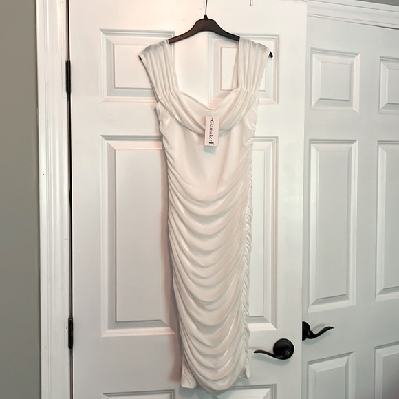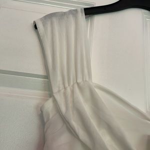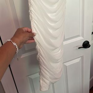 Wide sleeves that can be worn on or off the shoulder, cowl neck effect