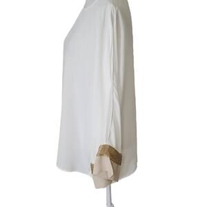 Brand new never worn. 2 cut out on bell sleeves with gold detail. Size large