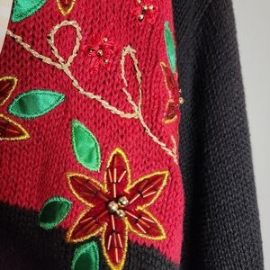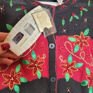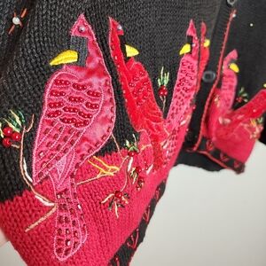 white stag vintage 90s black red cardinal holly Christmas knit button front cardigan.