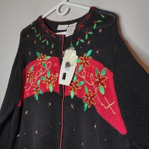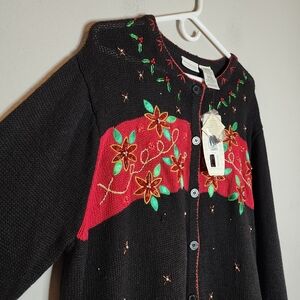 NWT White Stag Cardinal Embroidered Embellished Black Knit Cardigan 22/24 3X