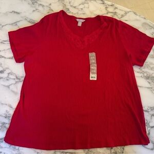 NWT White Stag V-Neck T-Shirt Red 2X (18W-20W) | Embroidered Neckline Plus Size