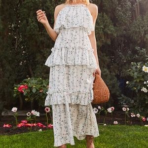 Brand new with tags. A beautiful white summer dress with tie-up straps. It's a bit fitted at the top then loose and flowing as you go down. Length 42", pit to pit 19". Size is labelled as XL but may fit more as a Large. I recommend comparing the armpit measurement to other dresses you wear to be sure.