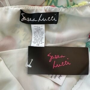 NWT White Susan Lucci Sheer Cover Up Dress Vivid Floral Print Rushed Tunic Dress