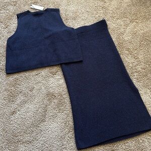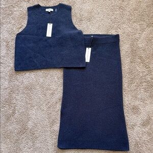 NWT White + Warren Cashmere Ribbed Shell Tank and Midi Pencil Skirt Set Deep Navy