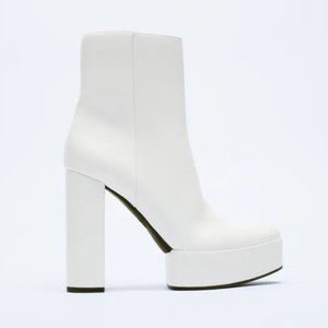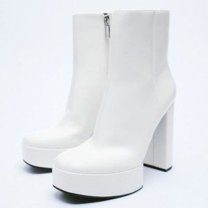 NWT White Wide Heeled Platform Sole Ankle Boots, 8