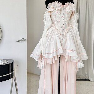 NWT White and Pink Floral Print Corset Top + Bloomers + Train Dress
