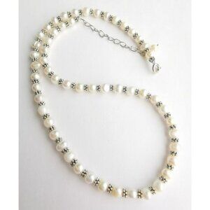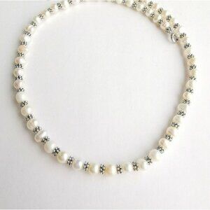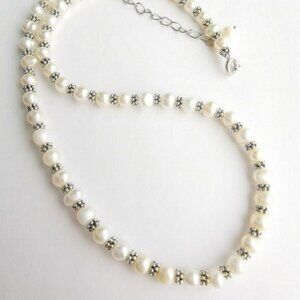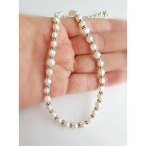 NWT White freshwater pearl choker necklace with sterling silver rondelles