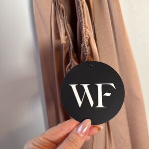 Excellent condition White Fox satiny mauve pink maxi dress. Purchased for bridesmaids dress, and didn't end up wearing. Size small. Long strappy details, can wrap around neck as halter or around waist as needed. High slit. No signs of wear.