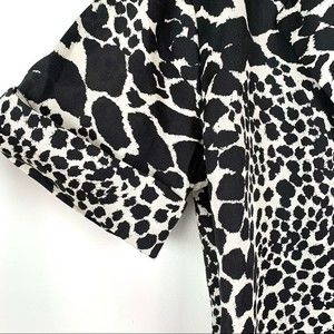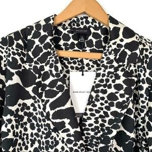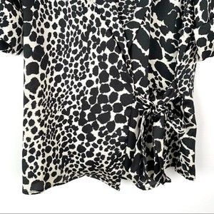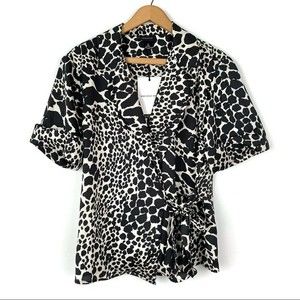 NWT Who What Wear Black & White Leopard Print Short Sleeve Collared Wrap Top