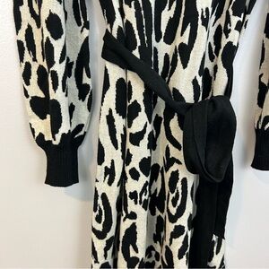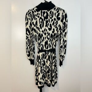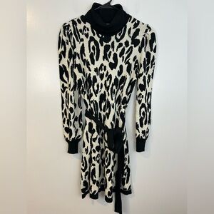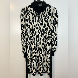 NWT Who What Wear Black/White Leopard/Animal Print Sweater Mini Dress Medium