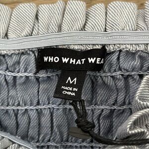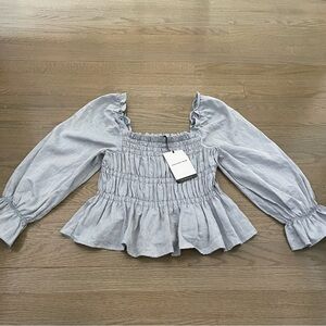 NWT Who What Wear Chambray Long Sleeve Light Blue Cotton Smocked Top Size M