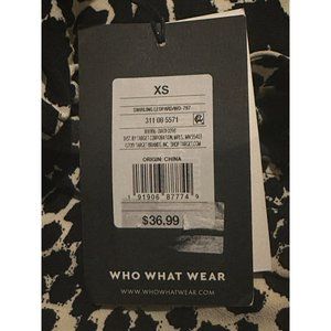 New with tags, Who What Wear women's dress in extra small. This black, leopard print dress features a sleeveless design and ruffle trim for a stylish, chic look.