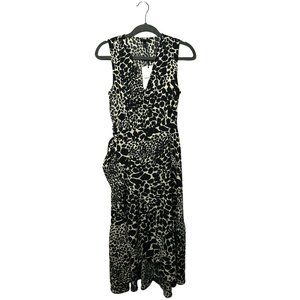 NWT Who What Wear Women's Animal Print Black Sleeveless Ruffle Trim Dress SZ XS