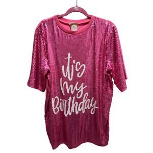 NWT Why Dresses “It’s My Birthday” Pink Sequin Shirt Dress – One Size
