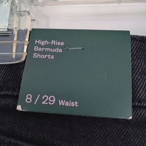 **NWT** Excellent condition denim shorts; Distressed, Bermuda length, high rise waist with button closure. Size 8/29. See measurements for accurate fit.
